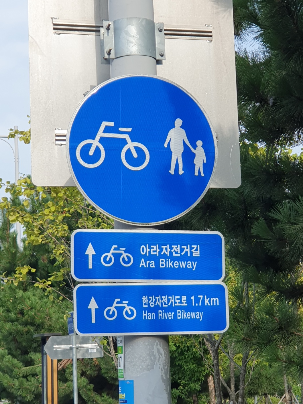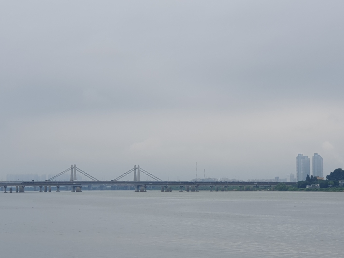 자전거를 타기 시작할 때 구름 낀 하늘로 가끔 강열한 햇빛이 꿈틀거리는 듯해 보였지만, 두 달 만에 방화대교 방향 한강 나들목을 지나 아라뱃길 자전거 코스를 타기에 나름 괜찮은 날씨였고, 아무래도 더운 한여름 날씨여서 그런지 차라리 소나기라도 잠시 내려주길 바랐습니다.